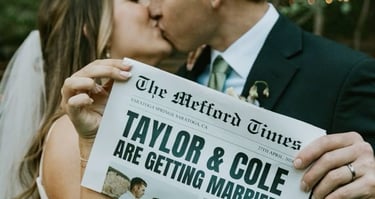 Uma experiência interativa que transforma o seu casamento em notícia 📰