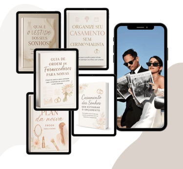 Você recebe 5 guias prontos para organizar cada etapa do seu casamento: